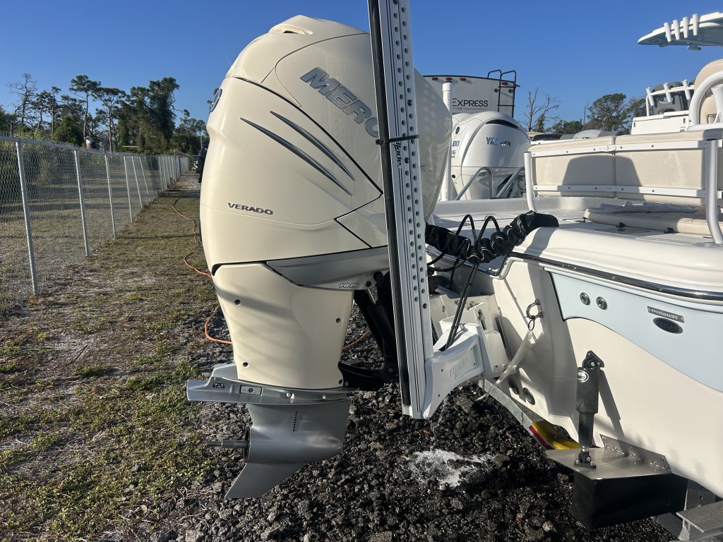 BREATHTAKING SPEED WITH A*NEW* 350 VERADO MERCURY MOTOR. IMPRESSIVE FUEL ECONOMY MAKING THIS BOAT IDEAL FOR TARGETING SPECIES NEARSHORE. THIS BEAUTY IS EQUIPPED WITH ERGONOMIC HELM A 12INCH GARMIN TOUCH SCREEN AND A DELUXE LEANING POST FOR COMFORT DURING EXTENDED TRIPS. WERE LOCATED AT 2200 PLACIDA RD. IN ENGLEWOOD FL ACROSS FROM LEMON BAY HIGH SCHOOL. WE ARE A VETERAN OWNED AND OPERAQTED DEALERSHIP PROUD TO OFFER NOT JUST QUALITY BOATS BUT A FULL-SERVICE EXPERIENCE. EVARY BOAT PURCHASE INCLUDES A GUIDED ON THE WATER ORIENTATION TO ENSURE YOUR FULLY COMFORTABLE AND CONFIDENT WITH YOUR NEW BOAT. WHEN YOU BUY FROM US, YOU`RE NOT JUST PURCHASING A BOAT YOU`RE GAINING A TRUSTED TEAM. OUR MARINE SERVICE CENTER IS HERE TO SUPPORT YOU WITH ANNUAL ENGINE MAINTENANCE, ACESSOERY INSTALLATIONS AND MORE. TRAILER IS NOT INCLUDED IN PRICE. ANY QUESTIONS PLEASE FEEL FREE TO CALL LARRY AT 941-270-0408.